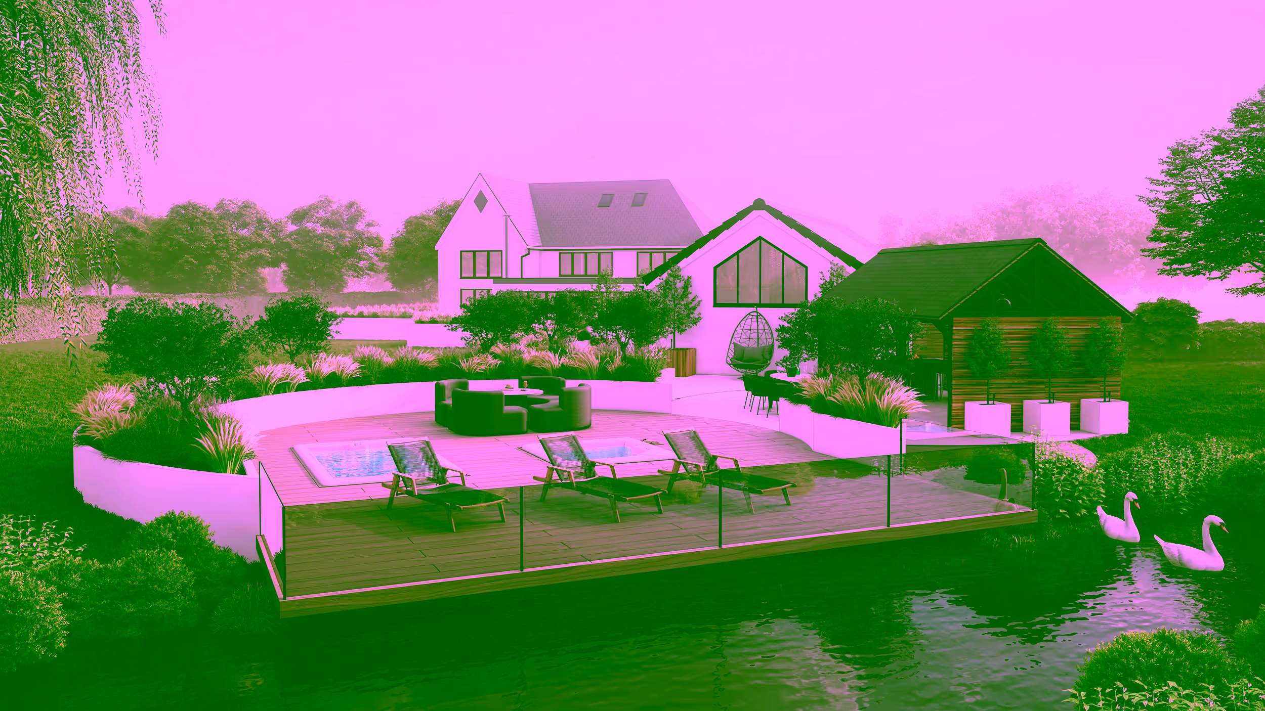 A serene, sun-soaked destination. With the property's generous plot overlooking a tranquil pond, we recognised an extraordinary opportunity to create something exceptional: a private holiday retreat just steps from their home.